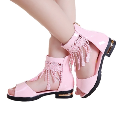 Children's Shoes Girls Sandals Summer 2023 New Korean Style Princess Shoes Soft Sole Student Roman Shoes